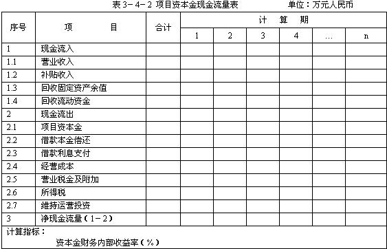 1)项目资本金现金流量分析 项目资本金现金流量分析,应在拟定的融资方案下,从项目资本金出资者整体的角度,确定其现金流入和现金流出,编制项目资本金现金流量表,见表3-4-2.