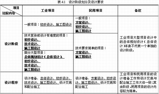 本部分内容有所扩充,新教材将其划分为工业项目和民用项目来分别说明设计阶段、设计程序、设计要求。