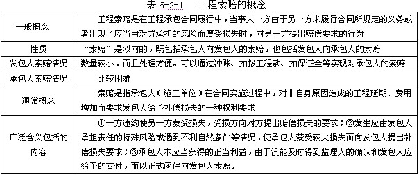 1、工程索赔的概念,见表6-2-1