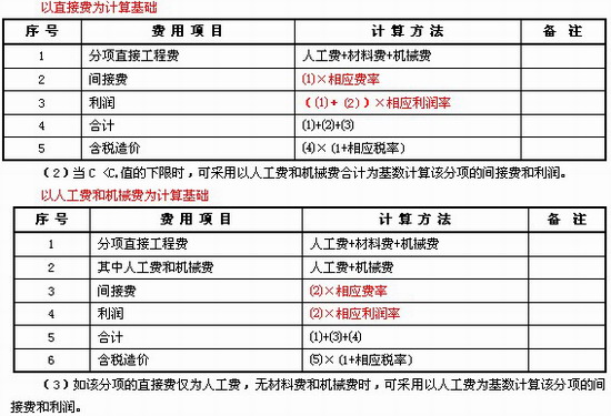 (1)当C >C0(C0为本地区原费用定额测算所选典型工程材料费占人工费、材料费、和机械费合计的比例)时,可采用以人工费、材料费、机械费合计为基数计算该分项的间接费和利润。