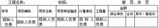 格式如下表 所示,在分部分项工程量清单的编制过程中,由招标人负责前六项内容填列,金额部分在编制招标控制价或投标报价时填列。