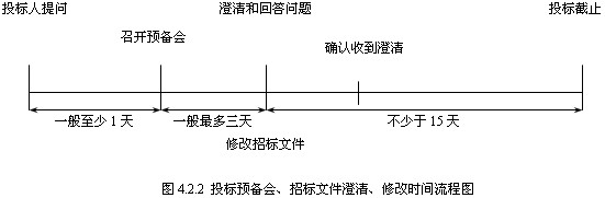 结合有关招标文件澄清和修改的时间要求,召开投标预备会和对招标文件的澄清、修改应符合图4.2.2所示的时间要求。