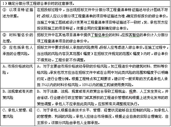 将五项费用汇总之后,并考虑合理的风险用后,即可得到分部分项工程量清单综合单价。