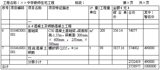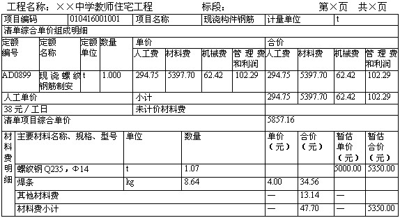 3)工程量清单综合单价分析表的编制。由于我国目前主要采用经评审的合理低标价法进行评标,为表明分部分项工程量综合单价的合理性,投标人应对其进行单价分析,以作为评标时判断综合单价合理性的主要依据。