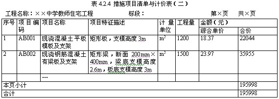 综合单价分析表的编制应反映出上述综合单价的编制过程,并按照规定的格式进行,如表4.2.2所示。