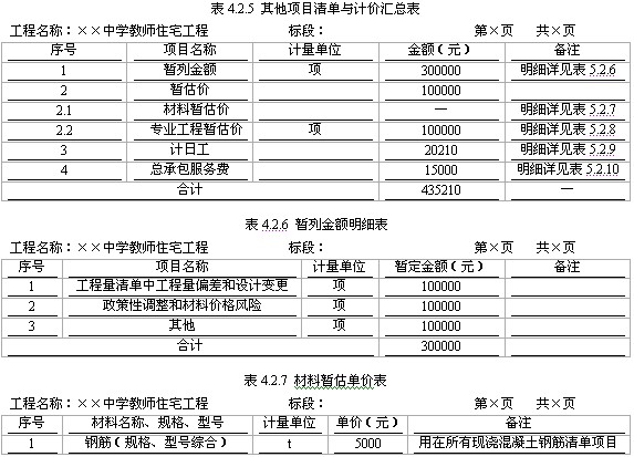 1)暂列金额应按照其他项目清单中列出的金额填写,不得变动(如表4.2.6所示)。