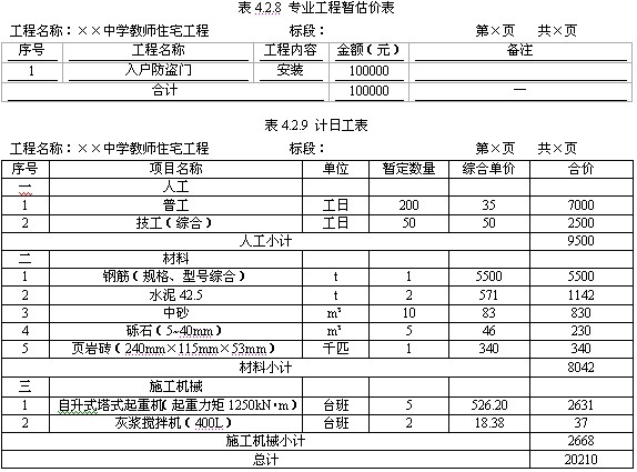 3)计日工应按照其他项目清单列出的项目和估算的数量,自主确定各项综合单价并计算费用(如表4.2.9所示)。