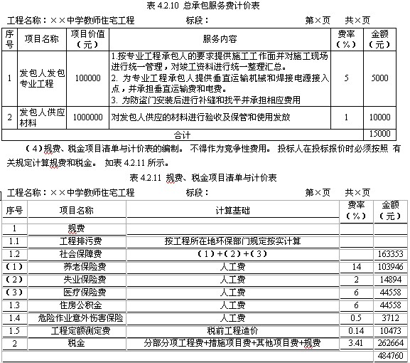 4)总承包服务费,根据服务内容自主确定(如表4.2.10所示)。