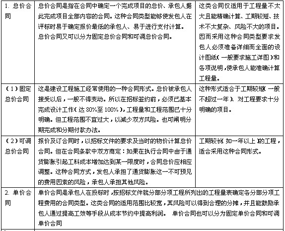 造价工程师辅导资料:建设工程施工合同的类型