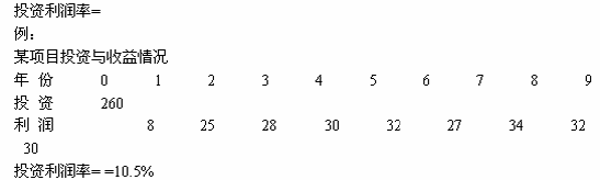 2)投资收益率(投资效果系数):项目达到设计能力后,其每年的净收益与项目全部投资的比率。是考察项目单位投资赢利能力的指数。