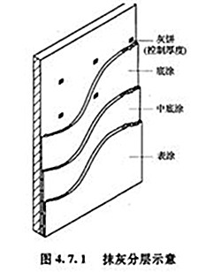 底层是墙体基层的表面处理,作用是与基层粘结和初步找平,基层的施工操作和材料选用对饰面质量影响很大。常用材料有石灰砂浆、水泥砂浆和混合砂浆,具体根据基层材料和使用要求不同而选用不同材料。一般对砌体基层可选用石灰砂浆、水泥混合砂浆,有防潮防水要求的用水泥砂浆;对混凝土基层可选用水泥混合砂浆或水泥砂浆;对木板条基体用纸筋灰、麻刀灰或玻璃丝灰。