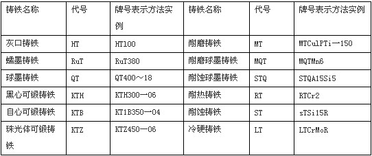注:本表摘自现行国家标准《铸铁牌号表示方法》GB/T5612.