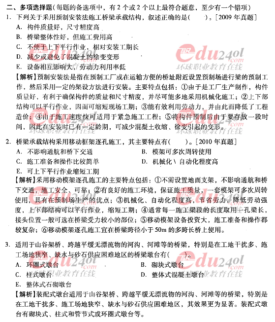 2012年造价工程师《技术与计量》(土建)过关必做试题及答案(9)