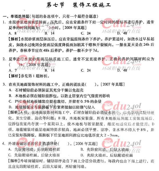 2012年造价工程师《技术与计量》(土建)过关必做试题及答案(1)