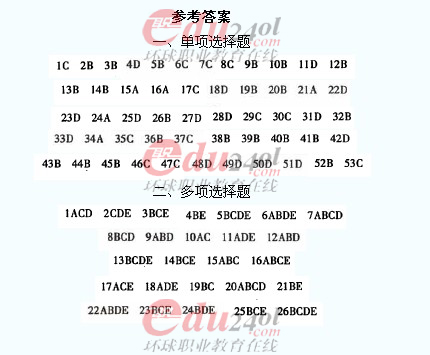 2012年造价工程师《技术与计量》(土建)过关必做试题参考答案