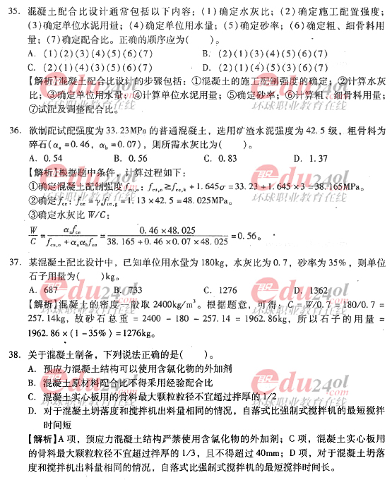 - 2024年一级造价师《土建计量》考试真题及答案31-40题2024-10-23