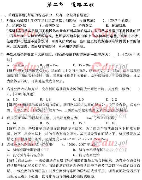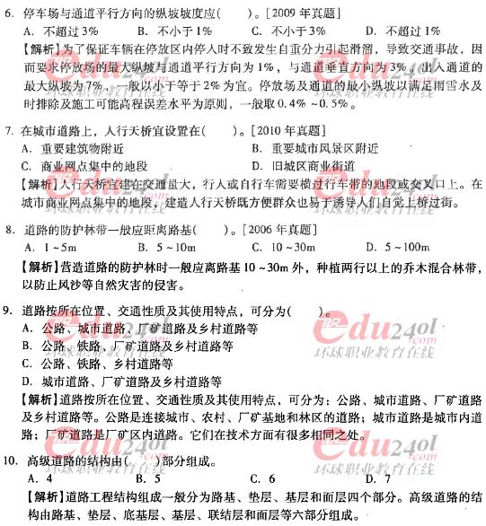 摘要 2012年造价工程师《技术与计量》(土建)过关必做试题及答案(三)主要内容为第二章工程构造第二节道路工程单项选择题、多项选择题以及答案解析。