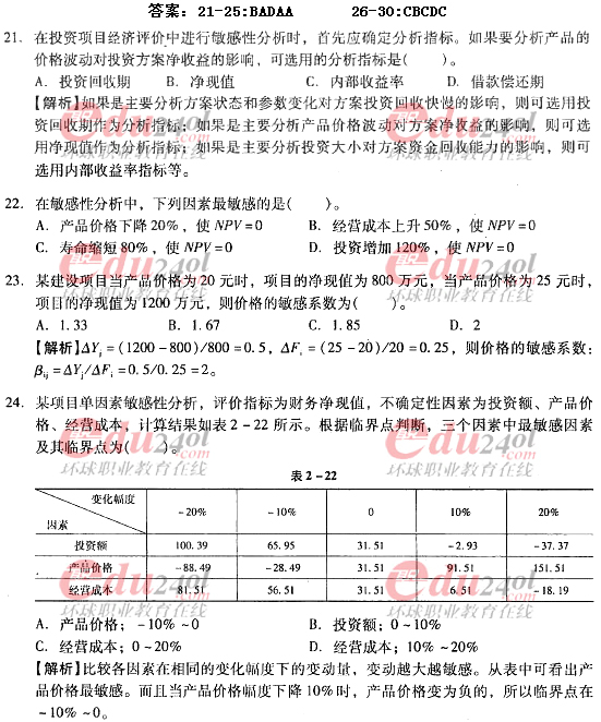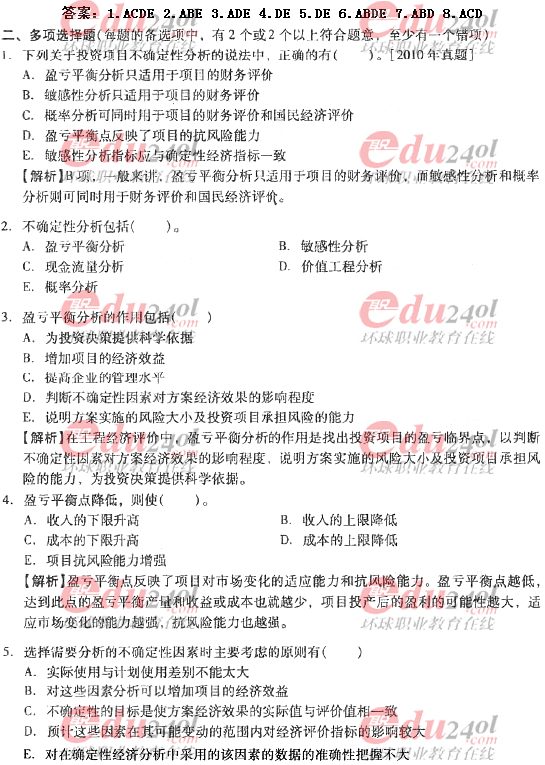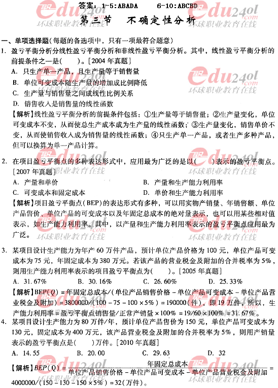 摘要 2012年造价工程师《理论与法规》过关必做试题及答案(五)主要内容为第三节不确定性分析单项选择题、多项选择题及其答案解析。
