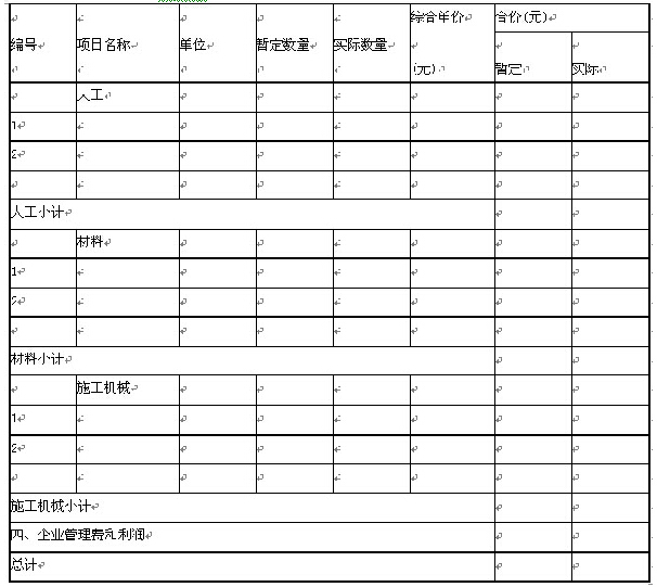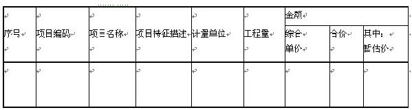 注:此表项目名称、暂定数量由招标人填写,编制招标控制价时,单价由招标人按有关计价规定确定;投标时,单价由投标人自主报价,按暂定数量计算合价计入投标总价中。结算时,按发承包双方确认的实际数量计算合价。