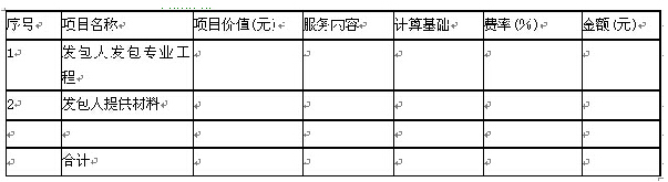 总承包服务费应列出服务项目及其内容等。总承包服务费按照表2.2.8的格式列示。