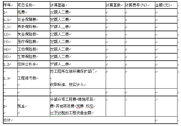 表2.2.9规费、税金项目计价表
