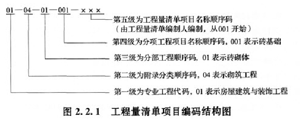 项目编码结构如图2.2.1所示(以房屋建筑与装饰工程为例):