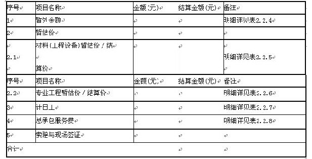 表2.2.6专业工程暂估价及结算价表