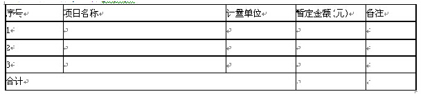 注:此表由招标人填写,如不能详列,也可只列暂定金额总额,投标人应将上述暂列金额计入投标总价中。