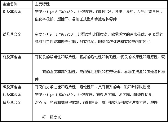 常用的有色金属主要特性如表1.1.3所示。