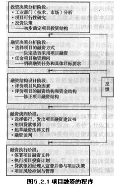 从项目投资决策开始,至选择项目融资方式为项目建设筹措资金,一直到最后完成该项目融资为止,项目融资大致可分为五个阶段:投资决策分析、融资决策分析、融资结构设计、融资谈判和融资执行。每一阶段的主要工作如图5.2.1所示。