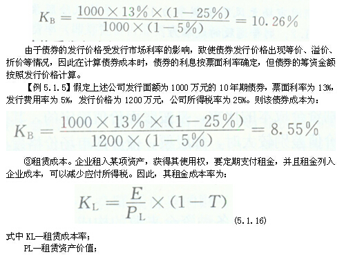 2)融资成本。反映融资成本的基本要素,对于贷款是利息,对于租赁是租金,对于债券是债息。应说明这些成本特性和计算方法。除此之外,对于某些伴随债务资金发生的资金筹集费,应说明其计算办法及数额。
