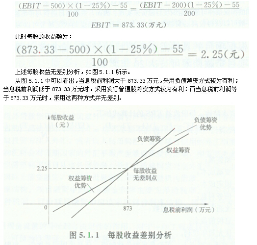 每股收益分析是利用每股收益的无差别点进行的。所谓每股收益的无差别点,是指每股收益不受融资方式影响的销售水平。根据每股收益无差别点,可以分析判断不同销售水平下适用的资本结构。每股收益EPS的计算式如下: