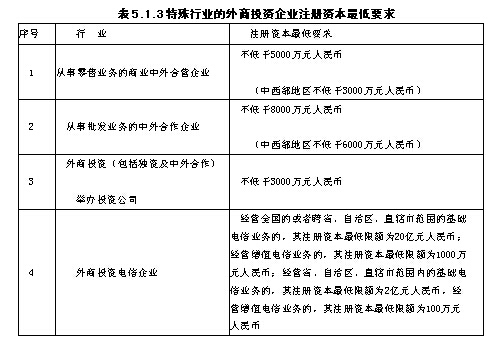 对一些特殊行业的外商投资企业,注册资本的特殊要求见表5.1.3。