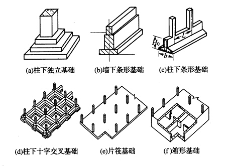 基础按受力特点及材料性能可分为刚性基础和柔性基础;按构造的方式可分为条形基础、独立基础、片筏基础、箱形基础、桩基础等。