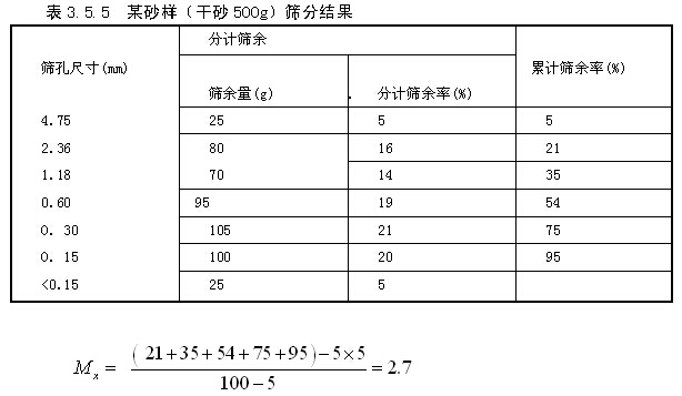 某砂样筛分结果列于表3.5.5中,试评定该砂的粗细程度和颗粒级配。
