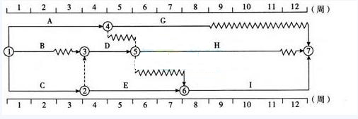 2某工程双代号时标络计划如图所示,其中工作A的总时差和自由时差分别为( )周。
