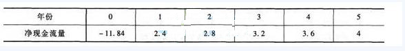 解析:项目的内部收益率是项目到计算期末正好将未收回的资金全部收回来的折现率,是项目对贷款利率的最大承担能力。题中折现率为10%时,第5年恰好把投资全部收回,所以该公司的内部收益率等于折现率10%。