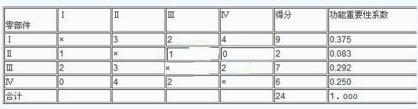 则在不修正各功能累计得分的前提下,零部件Ⅲ的功能重要性系数为( )。