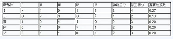 20某产品零部件功能重要程度采用0―1评分法评分的结果如表所示。