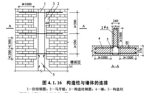 1)每120mm墙厚放置lg 3)埋人长度从留槎处算起每边均不应小于500mm,对抗震设防烈度6度、7度的地