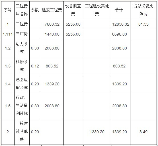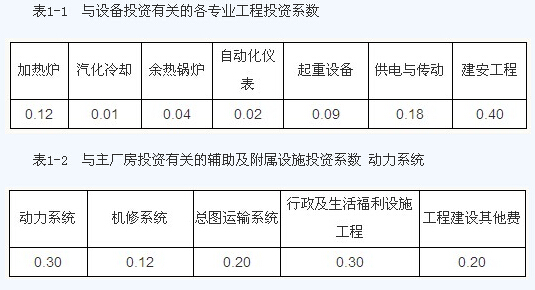主厂房投资C=工艺设备投资×(1+∑Ki)