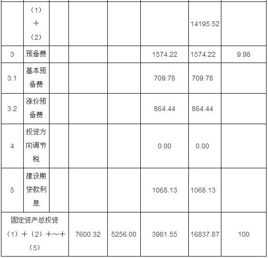 (2)拟建项目总投资=固定资产总投资+流动资金=16837.87+1010.27=17848.14万元