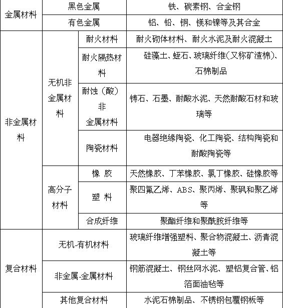 表1.1.1 常用的工程材料分类