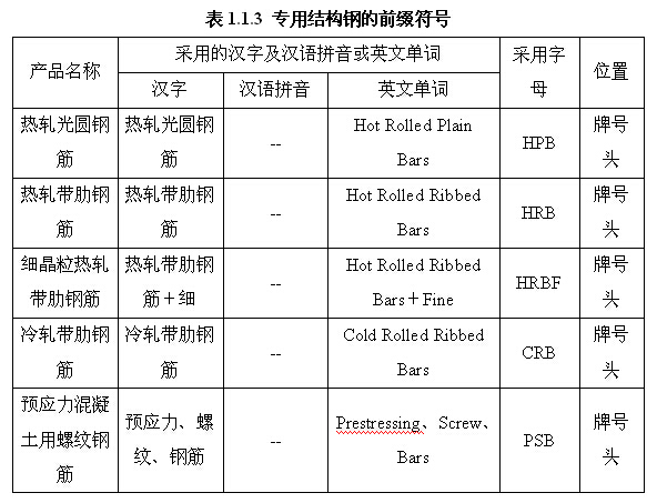 表1.1.3 专用结构钢的前缀符号