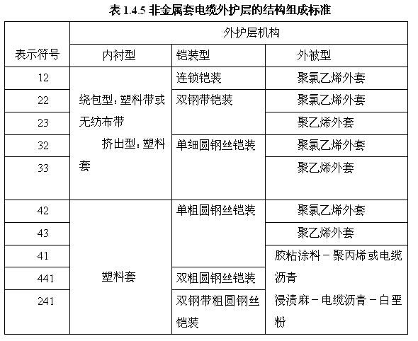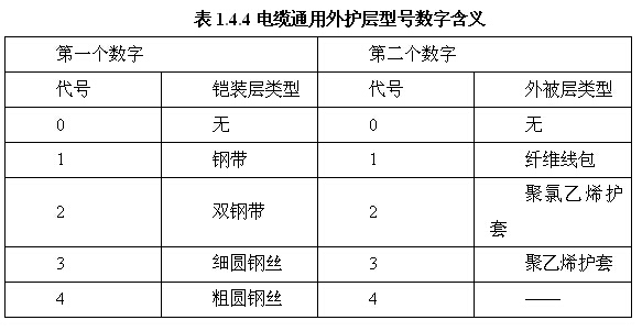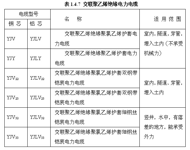 (1)铜芯导体电力电缆其型号见表1.4.6所示。