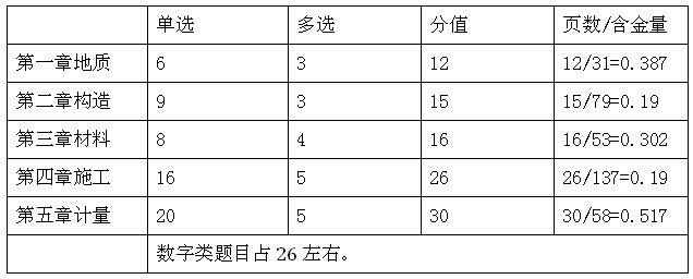 通过本科目考试主要测查应试人员对工程地质、工程构造、工程材料、施工技术等专业技术和工程量计算规则的知识水平,以及应用专业技术知识和工程量计算规则对建筑工程进行计量的能力。