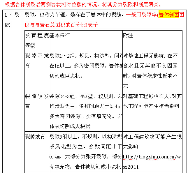 分析:A--对基础工程无影响,在不含水且无其他不良因素时,对岩体稳定性影响不大; B--对基础工程影响不大,对其他工程可能产生相当影响 ; C--对工程建筑物可能产生很大影响; D --对工程建筑物产生严重影响;