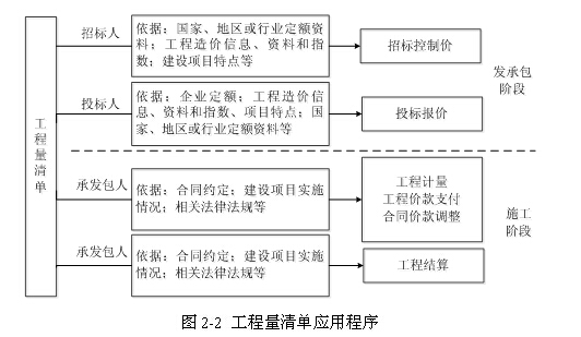 工程量清单计价的过程可以分为两个阶段,即工程量清单的编制(图2-1)和工程量清单应用(图2-2-2)两个阶段。