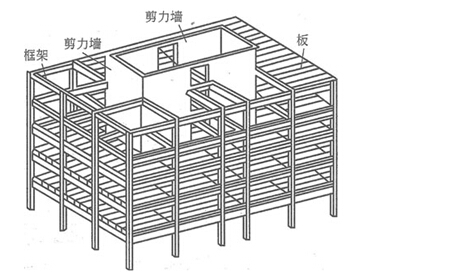 (3)剪力墙体系。剪力墙一般为钢筋混凝土墙,厚度不小于140mm,剪力墙的间距一般为3 -8m,适用于小开间的住宅和旅馆等,一般在30m高度范围内都适用。不适用于大空间的公共建筑, 结构自重也较大。