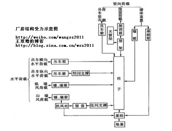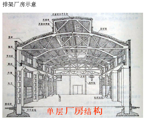 (1)横向排架:由基础、柱、屋架组成,主要是承受厂房的各种竖向荷载。